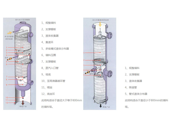 規(guī)整填料塔的分離性能取決于內(nèi)件,即填料、分布器、收集器等。同時(shí)也取決于許多參數(shù),如氣體負(fù)荷、液體負(fù)荷、物料性質(zhì)、操作壓力、填料濕潤(rùn)性能和液體分布不均勻等等。至今不能由填料的幾何形狀來(lái)準(zhǔn)確計(jì)算塔的分離性能,需要通過填料塔的理論和不同條件下通過試驗(yàn)塔來(lái)測(cè)定準(zhǔn)確數(shù)據(jù)。用戶可根據(jù)資料以近似程度確定塔的尺寸和需要的填料高度。如果需要經(jīng)濟(jì)、合理的結(jié)構(gòu)形式,我廠愿與用戶密切合作。