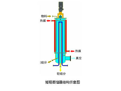 短程蒸餾是一種在高真空(<10Pa)條件下,在加熱面上被蒸發(fā)的分子經(jīng)過(guò)盡可能短的距離到達(dá)冷凝面進(jìn)行冷凝,從而實(shí)現(xiàn)液-液分離的蒸餾過(guò)程。當(dāng)加熱面與冷凝面的距離小于或等于操作真空和溫度下的被蒸發(fā)分子的平均自由程時(shí),該蒸餾過(guò)程也被稱為分子蒸餾。它具有蒸餾溫度低、蒸餾真空度高、受熱時(shí)間短、分離程度高等特點(diǎn)。