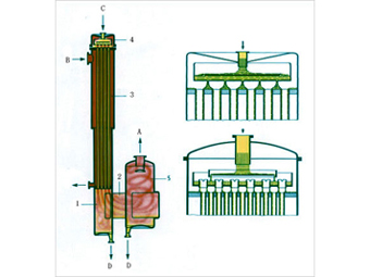 除了管材尺寸以外,選擇合適的液體分布裝置對(duì)獲得潤(rùn)濕很重要,兩種液體分布裝置。由于加熱管中液體量低且流速快,產(chǎn)品停留時(shí)間頗為短暫,因此,可以溫和地蒸發(fā)熱敏性物料。